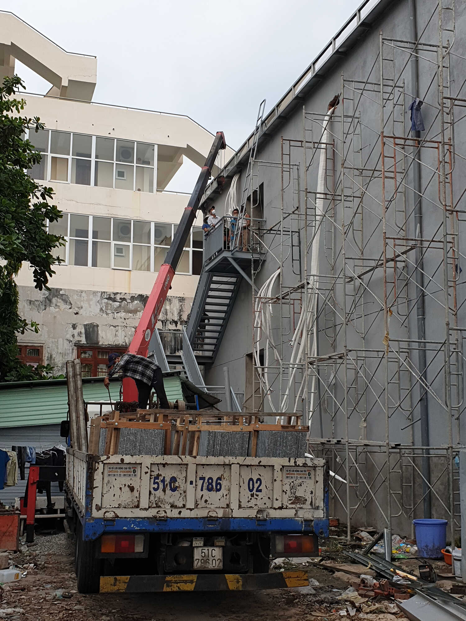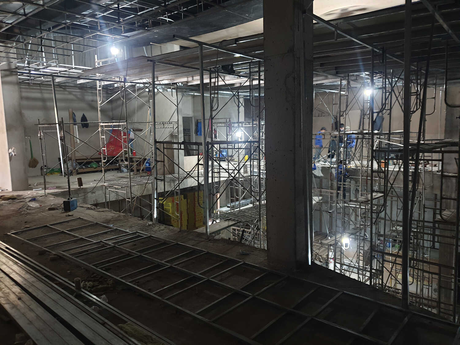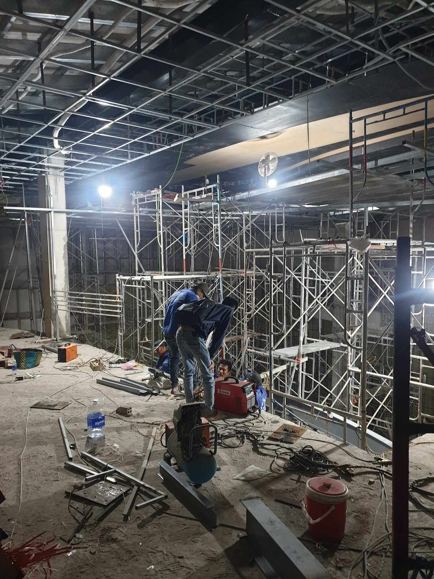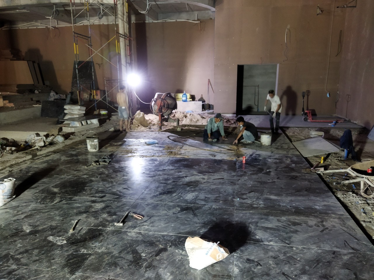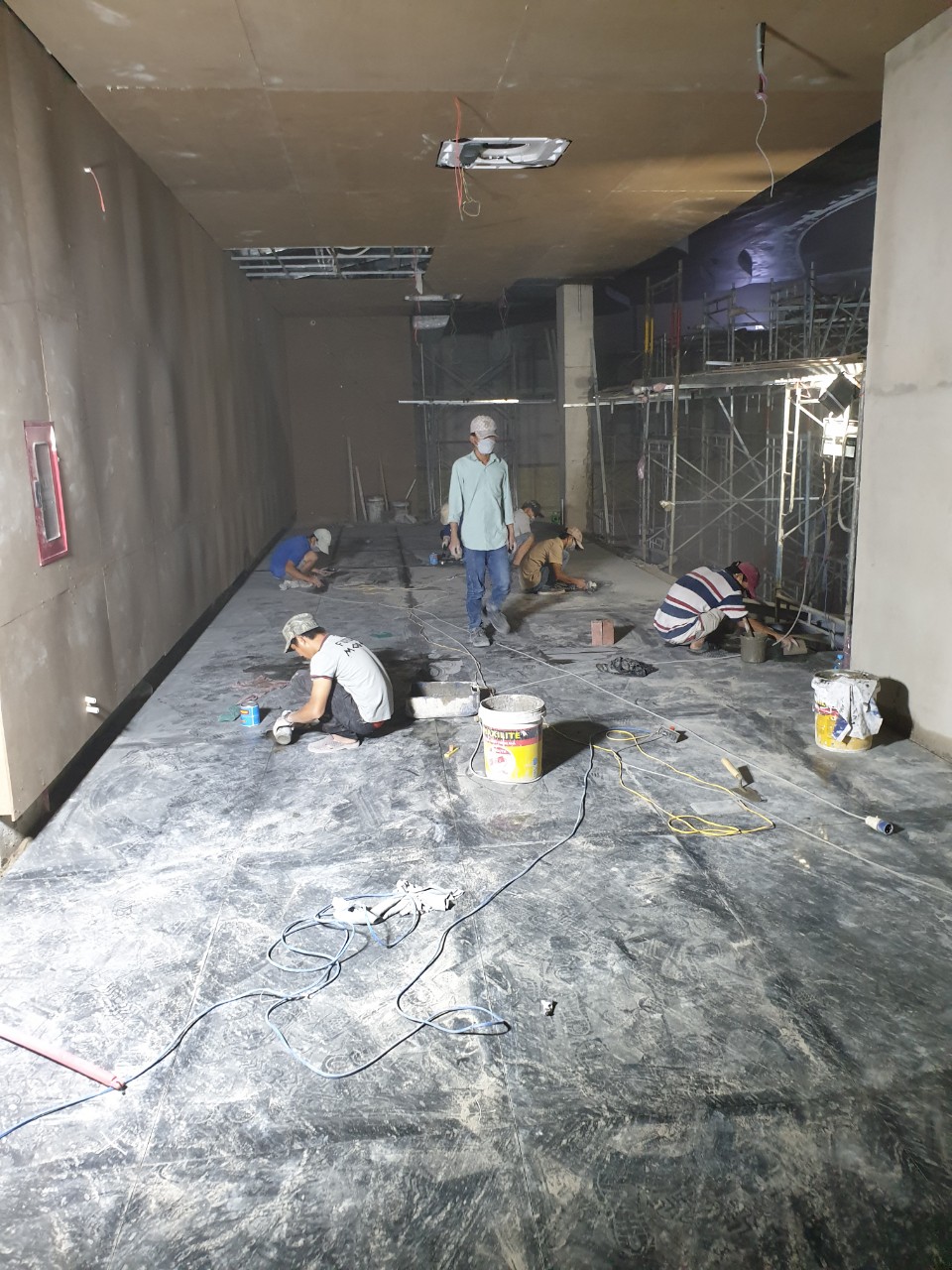 Mặt bằng thi công khó khăn vì nhiều đơn vị thi công công trình đang tiến hành cùng thời điểm như thi công gỗ, điện, sắt …