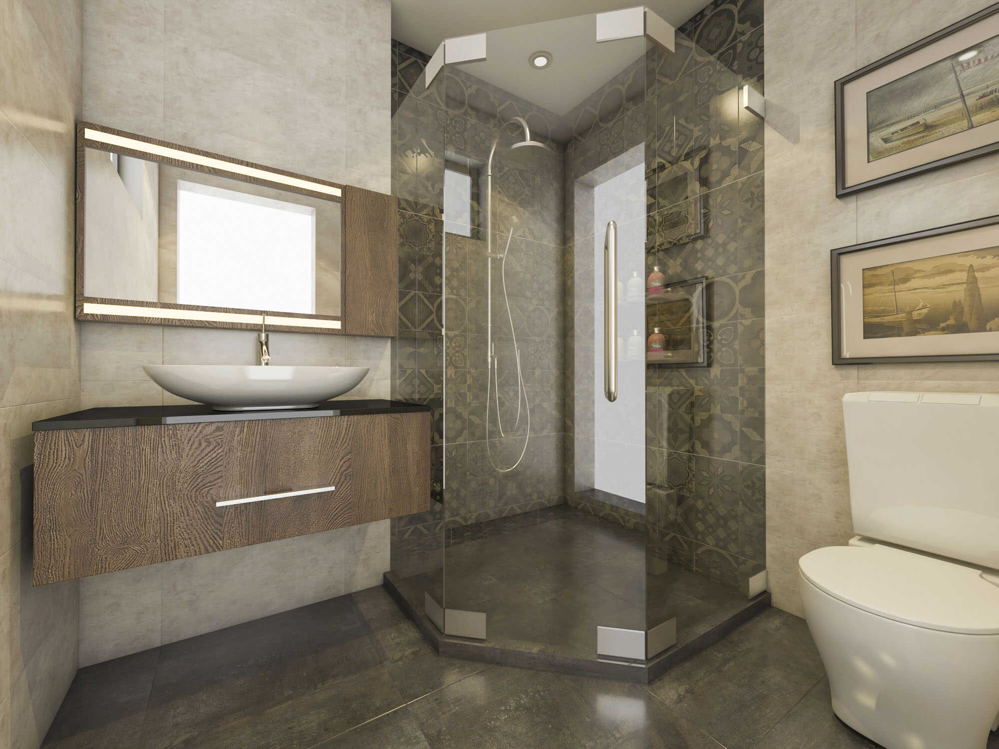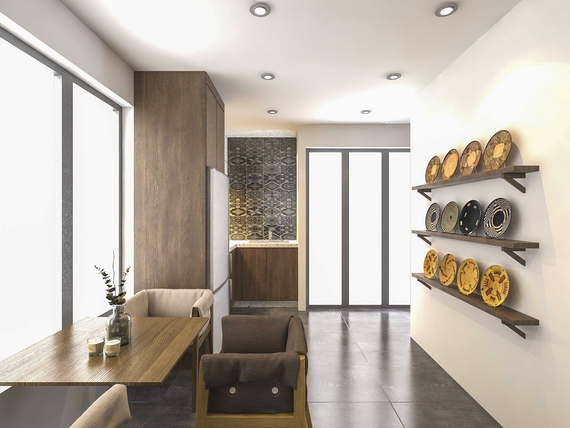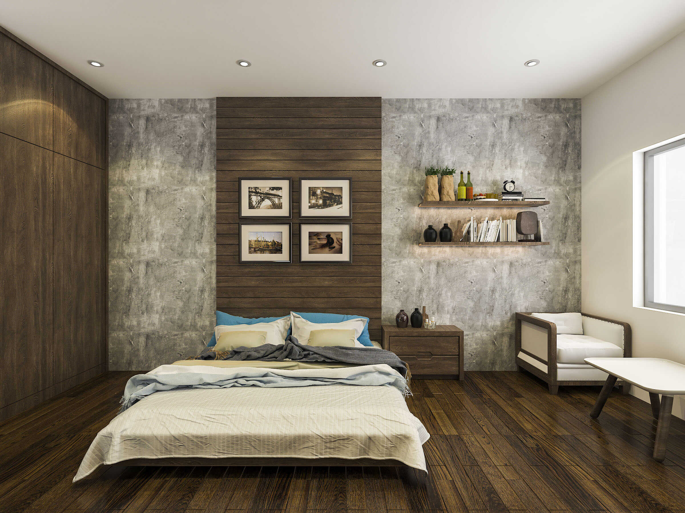 Sự phối hợp màu sắc khéo léo giữa gam trắng kem, tone trầm của gỗ và các gam màu xám tạo ra một tầm nhìn có chiều sâu và cảm giác thoải mái, sang trọng cho không gian khách sạn.