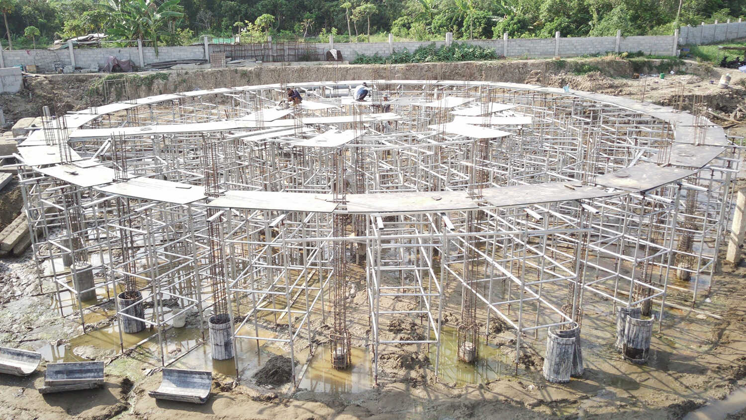 Với địa hình thi công đặc biệt, Bymehome lựa chọn hệ giàn giáo nêm có tải trọng chịu tải lớn và liên kết lại tạo thành một khối vững chắc đảm bảo an toàn tuyệt đối.